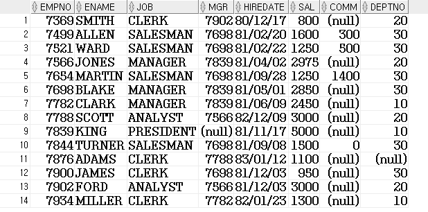 select ename from emp 와 SELECT ENAME FROM EMP는 동일한 결과값이 나옵니다.