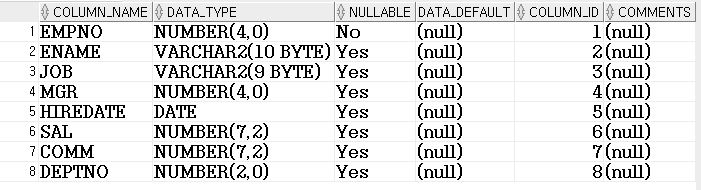 | VARCHAR(n) | 가변 길이의 문자를 지정한다. 최댓값은 4000byte | ||