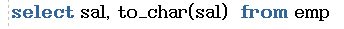sal은 넘버형이고 to_char(sal)은 문자형으로 변환 [넘버형은 오른쪽 정렬, 문자형은 왼쪽 정렬]