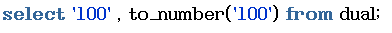 to_number('100')은 넘버형이고 '100'은 문자형 [넘버형은 오른쪽 정렬, 문자형은 왼쪽 정렬]
